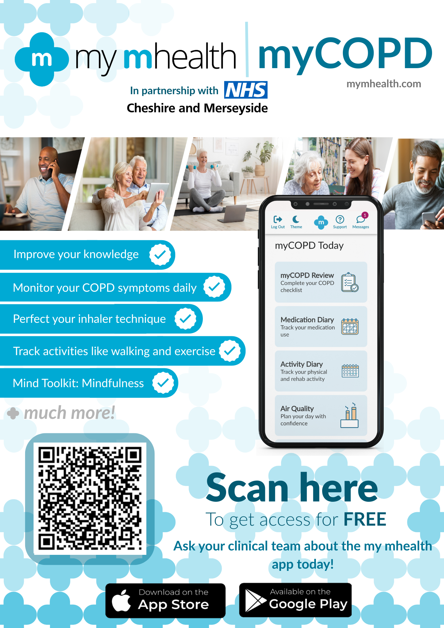 We’re excited to announce that myCOPD, powered by the my mhealth platform, is now available in your area and is fully funded by Cheshire & Merseyside ICB. That means ZERO cost for your practice or your patients and no added workload for your team.